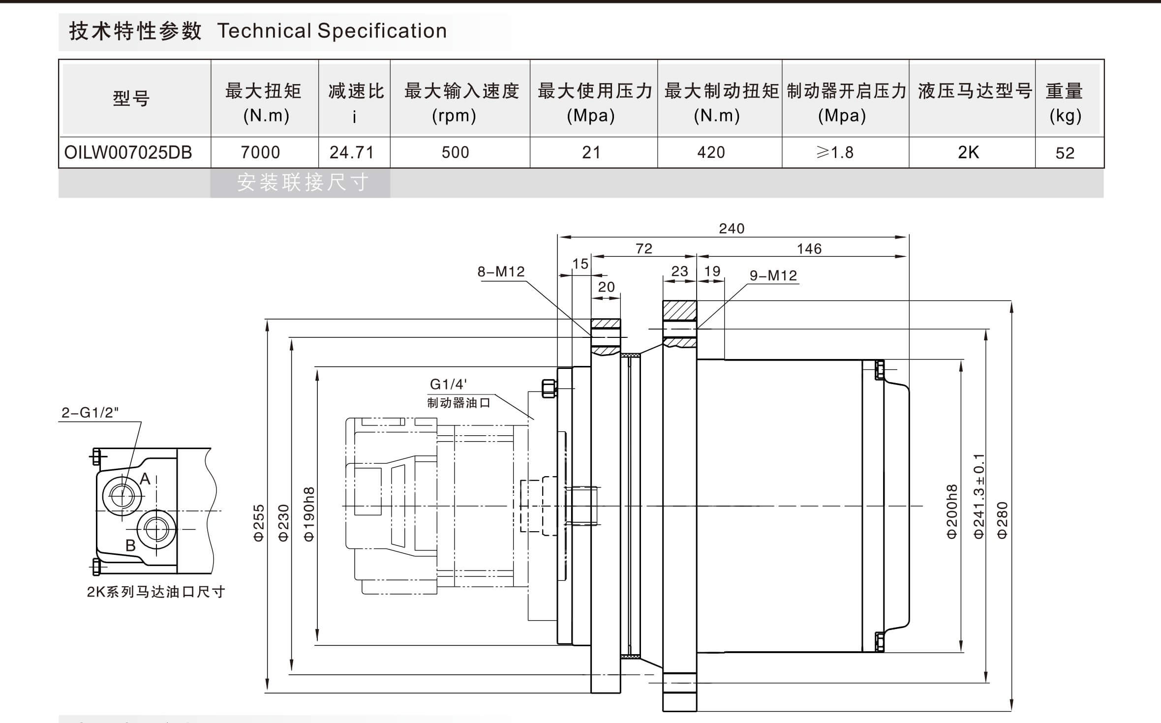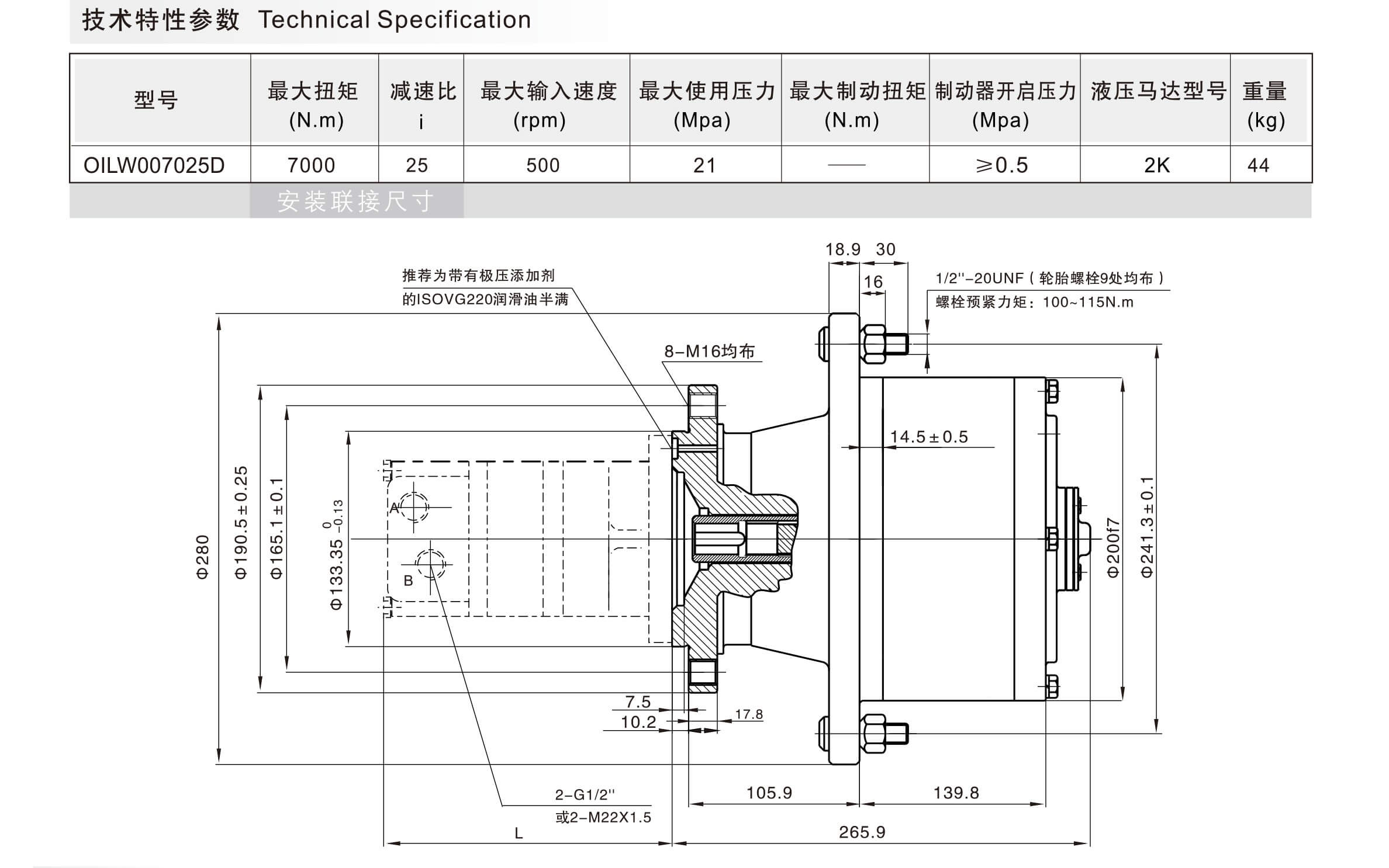 2.內(nèi)置彈簧加載液壓釋放多片式停車制動(dòng)器;